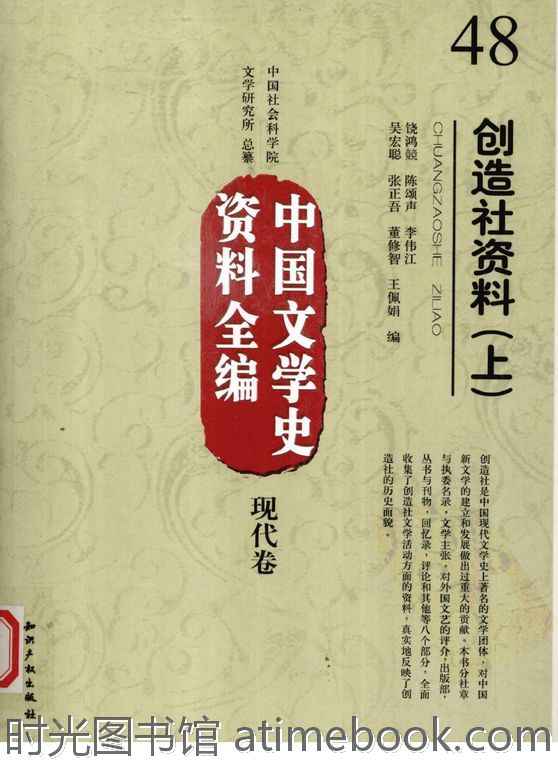 | 网盘路径:/时光图书馆珍藏系列/书籍文件/老图书/《创造社资料(上):中国文学史资料全编》电子版合集.db | ||