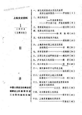 | 网盘路径:/时光图书馆珍藏系列/书籍文件/老图书/《上杭文史资料_1984年第1期_总第4期》电子版合集.db | ||
