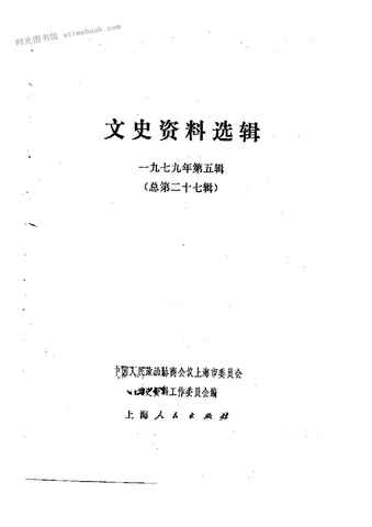 | 网盘路径:/时光图书馆珍藏系列/书籍文件/老图书/《上海文史资料选辑_1979年第5辑_总第27辑》电子版合集.db | ||