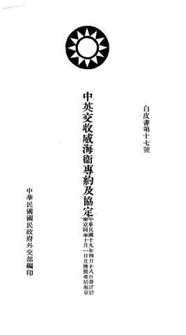 文件下载 | 名称:《中英交收威海卫专约及协定》电子版合集 | |