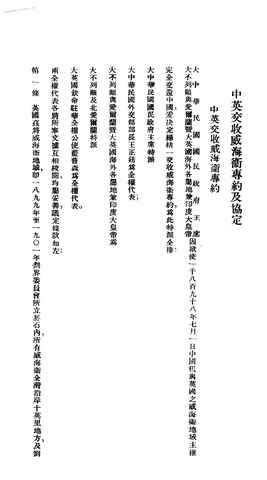 | 关键词:中国,英国,威海卫,专约,协定, | ||