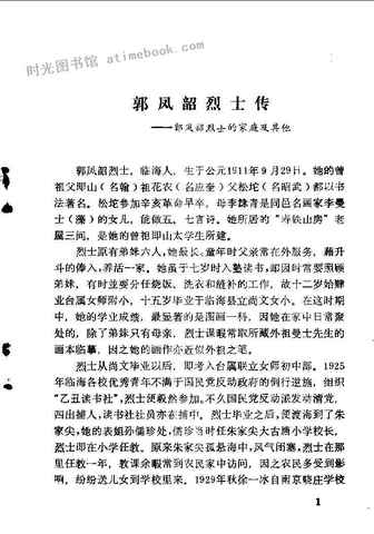 | 网盘路径:/时光图书馆珍藏系列/书籍文件/老图书/《临海文史资料特辑_第1辑_郭凤韶烈士史料》电子版合集.db | ||