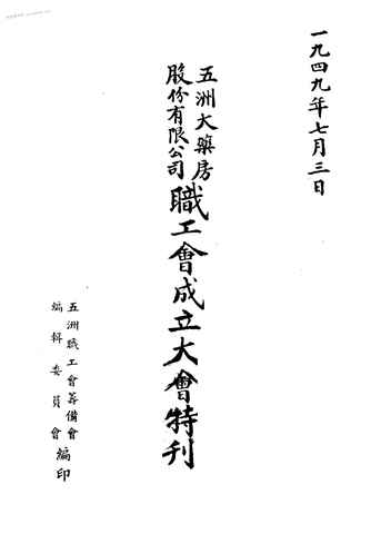 | 网盘路径:/时光图书馆珍藏系列/书籍文件/老图书/《五洲大药房股份有限公司职工会成立大会特刊》电子版合集.db | ||