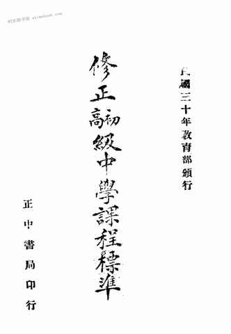 | 网盘路径:/时光图书馆珍藏系列/书籍文件/老图书/《修正初高级中学课程标准》电子版合集.db | ||
