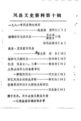| 网盘路径:/时光图书馆珍藏系列/书籍文件/老图书/《凤县文史资料_第10辑》电子版合集.db | ||