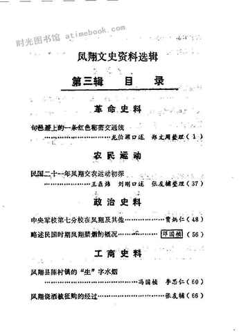 | 网盘路径:/时光图书馆珍藏系列/书籍文件/老图书/《凤翔文史资料选辑_第3辑》电子版合集.db | ||