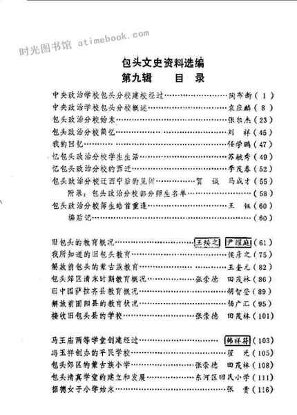 | 网盘路径:/时光图书馆珍藏系列/书籍文件/老图书/《包头文史资料选编_第9辑_包头政治分校及教育史料专辑》电子版合集.db | ||