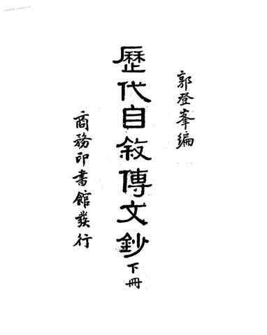 | 网盘路径:/时光图书馆珍藏系列/书籍文件/老图书/《历代自叙传文钞_下册》电子版合集.db | ||