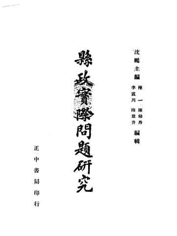 | 网盘路径:/时光图书馆珍藏系列/书籍文件/老图书/《县政实际问题研究》电子版合集.db | ||