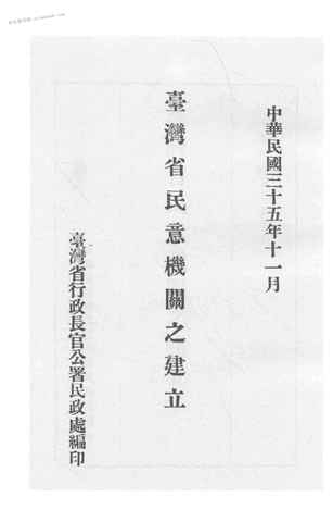 | 网盘路径:/时光图书馆珍藏系列/书籍文件/老图书/《台湾省民意机关之建立》电子版合集.db | ||