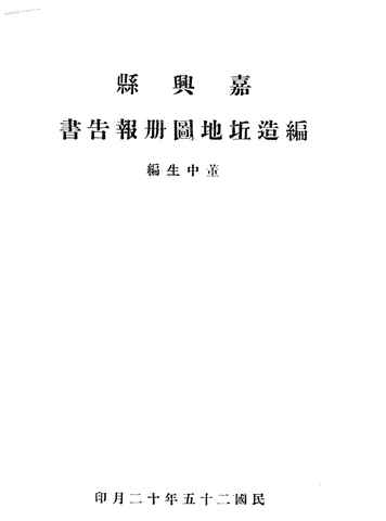 | 关键词:嘉兴县,编造,地图册,报告书, | ||