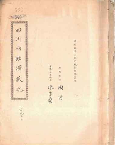 | 关键词:四川经济,四川金融,四川经济之现况,持久抗战与四川,建设四川与建国, | ||