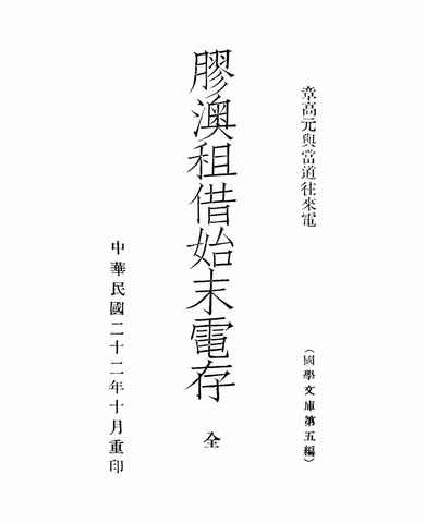| 网盘路径:/时光图书馆珍藏系列/书籍文件/老图书/《国学文库·胶澳租借始末电存》电子版合集.db | ||