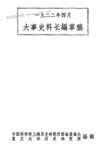 | 网盘路径:/时光图书馆珍藏系列/书籍文件/老图书/《大事史料长编草稿(一九二二年四月)》电子版合集.db | ||