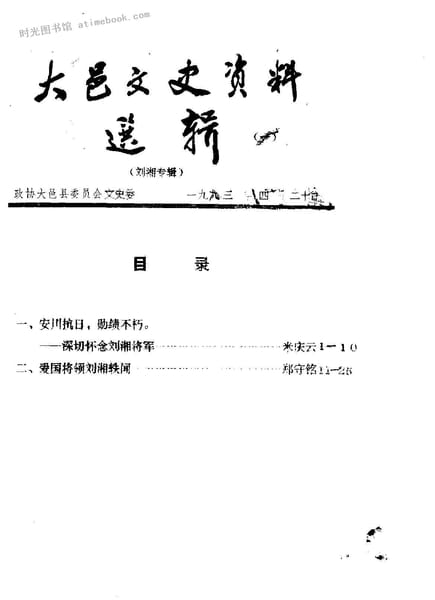 | 网盘路径:/时光图书馆珍藏系列/书籍文件/老图书/《大邑文史资料选辑》电子版合集.db | ||