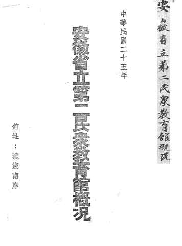 | 关键词:安徽省立第二民众教育馆, | ||