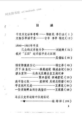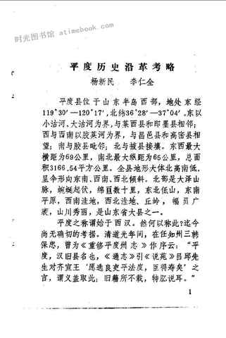 | 网盘路径:/时光图书馆珍藏系列/书籍文件/老图书/《平度文史资料_第1辑》电子版合集.db | ||