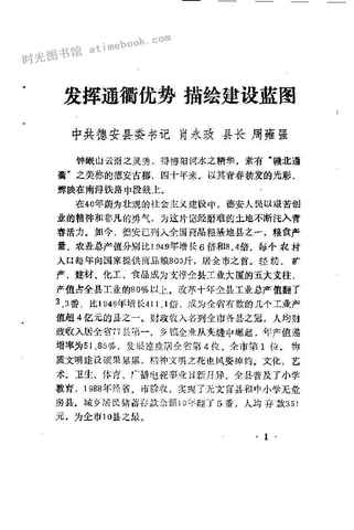 | 网盘路径:/时光图书馆珍藏系列/书籍文件/老图书/《德安县文史资料选辑_第3辑_(热烈庆祝中华人民共和国成立40周年)》电子版合集.db | ||