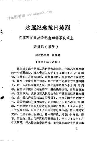 文件下载 | 名称:《德宏州文史资料选辑_第8辑_滇西抗日战争专辑》电子版合集 | |