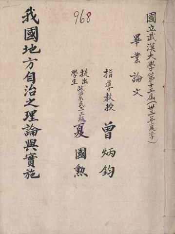 | 关键词:地方自治,宪政,新县制毕业论文, | ||