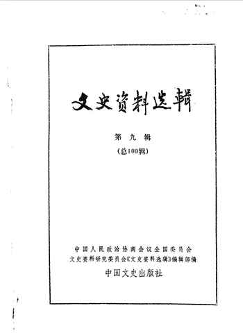 文件下载 | 名称:《文史资料选辑_第9辑_总109辑》电子版合集 | |