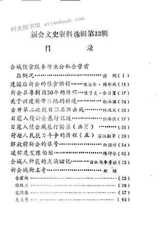 | 网盘路径:/时光图书馆珍藏系列/书籍文件/老图书/《新会文史资料选辑_第33辑》电子版合集.db | ||