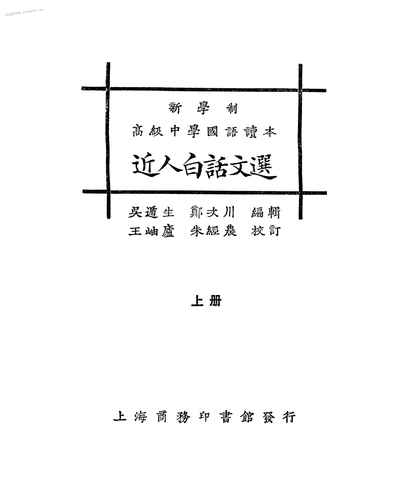 | 网盘路径:/时光图书馆珍藏系列/书籍文件/老图书/《新学制高级中学国语读本:近人白话文选》电子版合集.db | ||