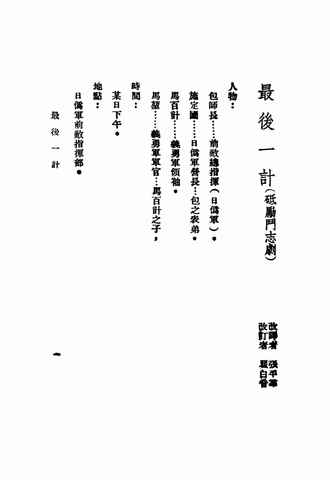 文件下载 名称:《最后一计》电子版合集 关键词:砥砺斗志剧,剧本,抗战宣传, 出版地区:武昌 1938年1月1日 文件大小:2.33 MB 原始格式:db数据库 导出格式:png 下载方式:百度网盘、夸克网盘、阿里云盘、123云盘 网盘路径:/时光图书馆珍藏系列/书籍文件/老图书/《最后一计》电子版合集.db 提示:也支持在线观看,安装阅读器即可,无需额外下载书籍文件。 下载地址: ★阅读器★ 百度网盘 阿里云盘 123云盘 夸克网盘 内容截图:(图片有压缩,使用阅读器观看更清晰) 书籍获取:书籍合集 喜欢 (0)