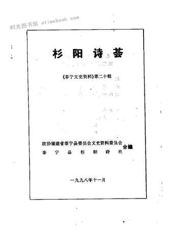| 网盘路径:/时光图书馆珍藏系列/书籍文件/老图书/《杉阳诗荟_泰宁文史资料_第20辑》电子版合集.db | ||