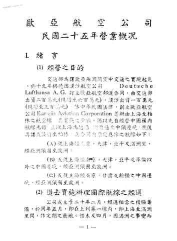 | 关键词:欧亚航空公司二十五年营业概况, | ||