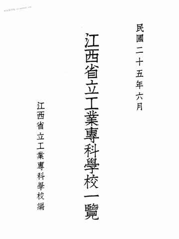 | 网盘路径:/时光图书馆珍藏系列/书籍文件/老图书/《江西省立工业专科学校一览:民国二十五年六月》电子版合集.db | ||
