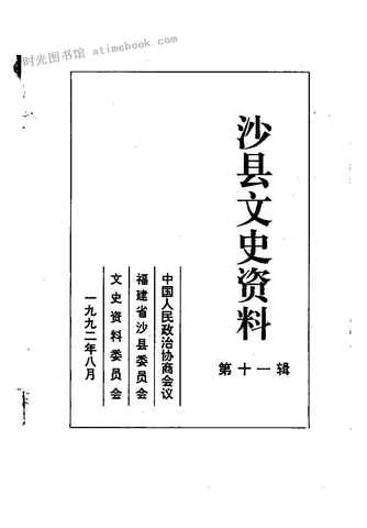 | 网盘路径:/时光图书馆珍藏系列/书籍文件/老图书/《沙县文史资料_第11辑》电子版合集.db | ||