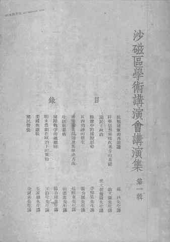 | 网盘路径:/时光图书馆珍藏系列/书籍文件/老图书/《沙磁区学术讲演会讲演集》电子版合集.db | ||