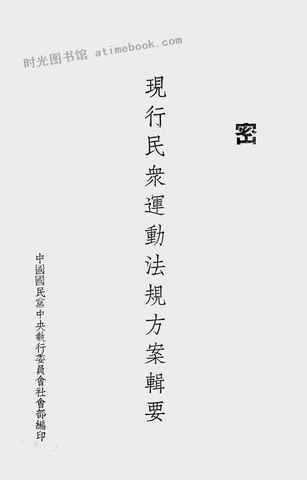 | 网盘路径:/时光图书馆珍藏系列/书籍文件/老图书/《现行民众运动法规方案辑要》电子版合集.db | ||