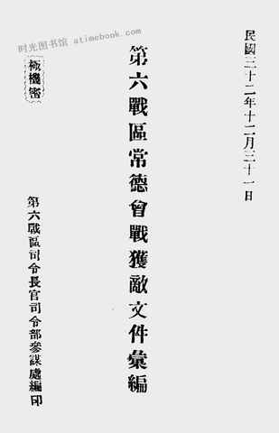 | 网盘路径:/时光图书馆珍藏系列/书籍文件/老图书/《第六战区常德会战获敌文件汇编》电子版合集.db | ||