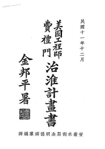 | 关键词:美国工程师费礼门治淮计划书, | ||