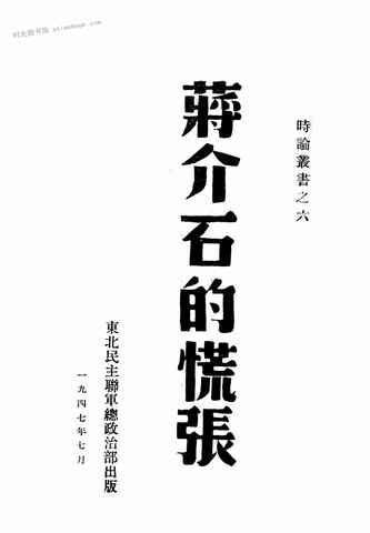文件下载 名称:《蒋介石的慌张》电子版合集 关键词:解放战争,军事,国民*军, 出版地区:nan 1947年7月1日 文件大小:5.40 MB 原始格式:db数据库 导出格式:png 下载方式:百度网盘、夸克网盘、阿里云盘、123云盘 网盘路径:/时光图书馆珍藏系列/书籍文件/老图书/《蒋介石的慌张》电子版合集.db 提示:也支持在线观看,安装阅读器即可,无需额外下载书籍文件。 下载地址: ★阅读器★ 百度网盘 阿里云盘 123云盘 夸克网盘 内容截图:(图片有压缩,使用阅读器观看更清晰) 书籍获取:书籍合集 喜欢 (0)