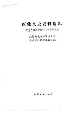 | 网盘路径:/时光图书馆珍藏系列/书籍文件/老图书/《西藏文史资料选辑_第1辑_(纪念西藏和平解放三十周年专辑)》电子版合集.db | ||