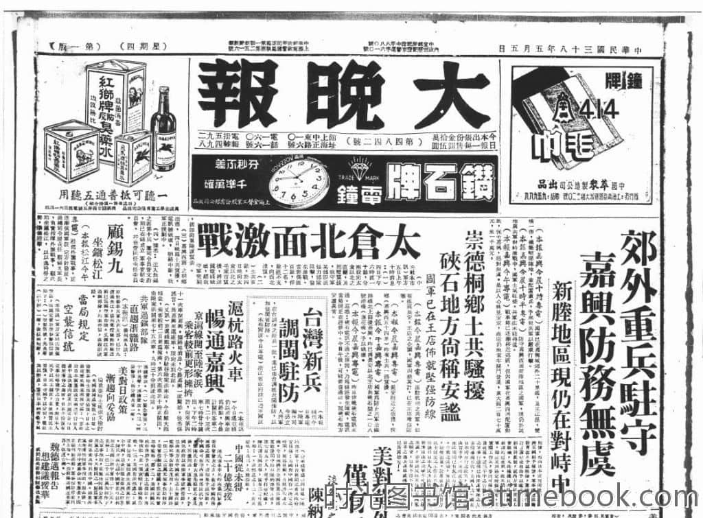 民国26年(1937年)11月国民*十九路军撤出上海后,该报虽继续出版,但接受日方的新闻检查,一度与汉奸报纸为伍。翌年11月,改为英商企业,由英人弗利特(B.H.Fleet)主持的独立出版公司出面发行,在香港注册,该报转变立场回到抗日报刊阵营,屡受日伪*。民国28年(1939年)7月,排字房被特务捣毁,汪伪*发布对83人的“通缉令”时,名单中有《大晚报》总主笔汪倜然、总经理王锦城、编辑徐怀沙、朱曼华4人。民国30年(1941年)12月8日,太平洋战争爆发,上海沦为“孤岛”,《大晚报》停刊。
