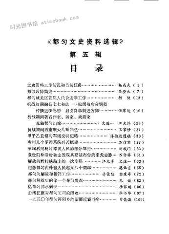 | 网盘路径:/时光图书馆珍藏系列/书籍文件/老图书/《都匀文史资料选辑_第5辑》电子版合集.db | ||