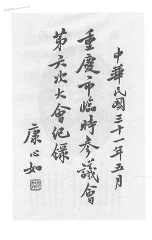 | 网盘路径:/时光图书馆珍藏系列/书籍文件/老图书/《重庆市临时参议会第六次大会记录》电子版合集.db | ||