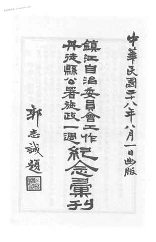 文件下载 | 名称:《镇江自治委员会工作丹徒县公署施政一周纪念汇刊(上)》电子版合集 | |