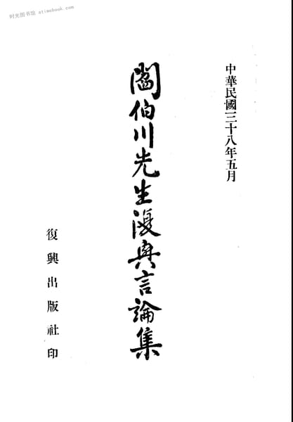 | 网盘路径:/时光图书馆珍藏系列/书籍文件/老图书/《阎伯川先生复兴言论集》电子版合集.db | ||