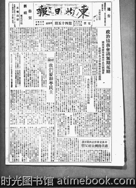 网盘路径:/时光图书馆珍藏系列/书籍文件/老报纸/辽宁/《东北日报》(山海关)1945-1954/《东北日报》1946年合集.db