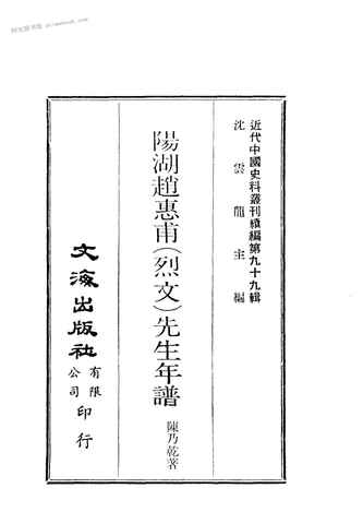 | 网盘路径:/时光图书馆珍藏系列/书籍文件/老图书/《阳湖赵惠甫(烈文)先生年谱》电子版合集.db | ||