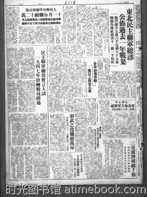网盘路径:/时光图书馆珍藏系列/书籍文件/老报纸/辽宁/《东北日报》(山海关)1945-1954/《东北日报》1948年合集.db