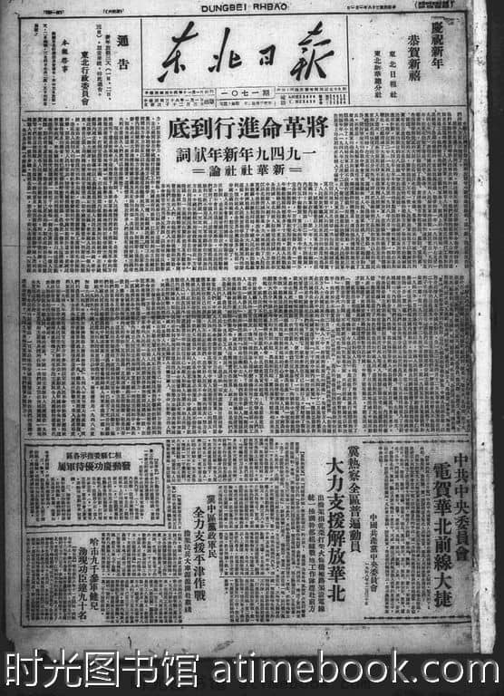 网盘路径:/时光图书馆珍藏系列/书籍文件/老报纸/辽宁/《东北日报》(山海关)1945-1954/《东北日报》1949年合集.db