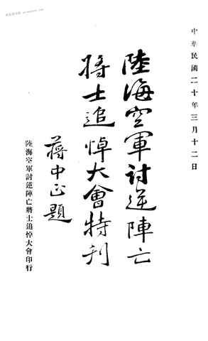 | 网盘路径:/时光图书馆珍藏系列/书籍文件/老图书/《陆海空讨逆阵亡将士追悼大会特刊》电子版合集.db | ||