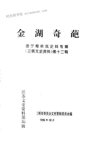 | 网盘路径:/时光图书馆珍藏系列/书籍文件/老图书/《三明文史资料_第12辑_金湖奇葩_泰宁梅林戏史料专辑》电子版合集.db | ||