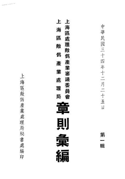 | 网盘路径:/时光图书馆珍藏系列/书籍文件/老图书/《上海区处理敌伪产业审议委员会上海区敌伪产业处理局章则汇编_第1辑》电子版合集.db | ||
